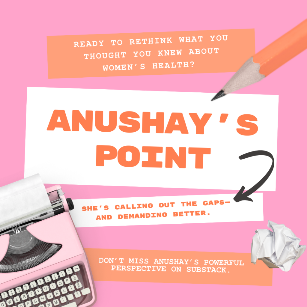 Currently ranked in the Top 25 in the Health & Politics category on Substack, Anushay’s Point is for readers seeking clarity in a noisy media landscape and for those who want to understand not just what is happening in women’s health, but why it matters.